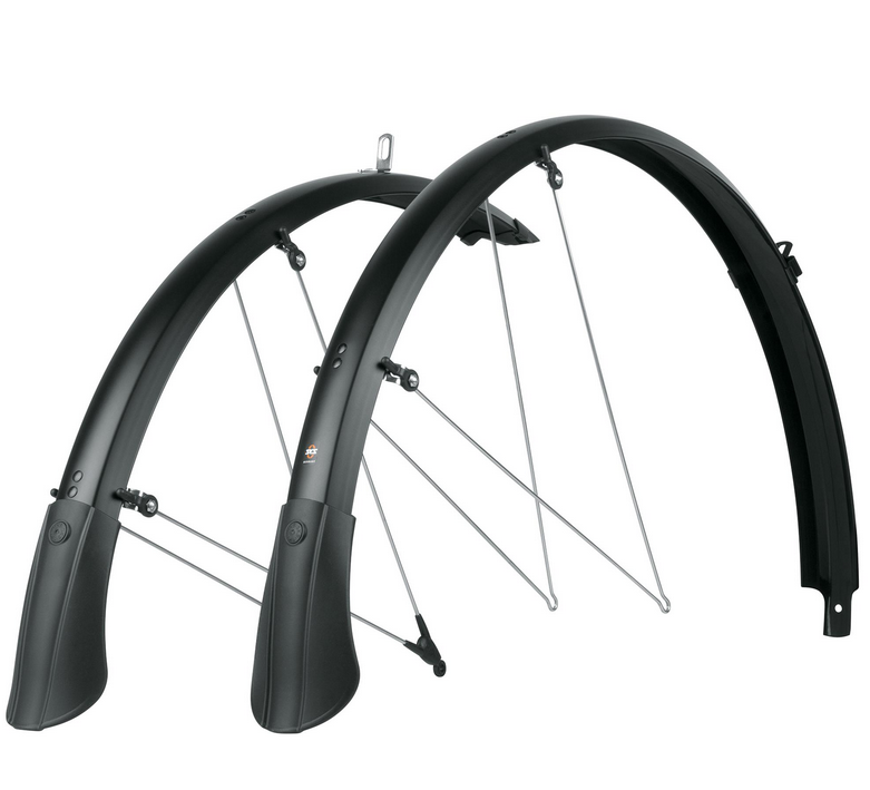 | Description | SKS: A modern evolution of a timeless design, the SKS Bluemels mudguard set delivers full coverage, durable protection and a clean, understated finish for road, hybrid and trekking bikes. Built with corrosion-resistant materials and a fixed-bridge construction, it ensures reliable defence against spray and debris in all conditions. The robust stainless-steel stays and fittings guarantee long-term stability, while the ASR security fastening prevents wheel lock if debris becomes trapped. Available in multiple widths to suit different tyre sizes, it's a proven choice for riders who value performance, precision and durability. Features Specifications